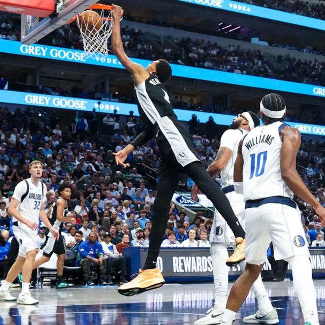 除了视觉效果夸张外,文班亚马的比赛影响力也极强,本场他只打了不到30分钟,期间马刺净胜独行侠31分,作为对比,独行侠的两个状元秀:
